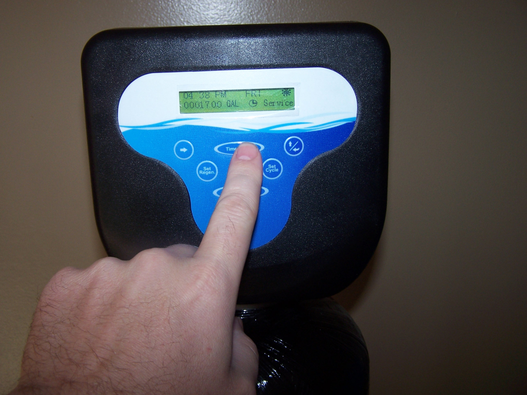 5. Once your softener is programmed, advance your controller to manual regeneration by pressing and holding the regeneration button