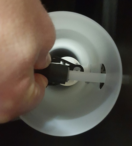 Once the filling of the mineral tank is completed, carefully remove the tape or plug from the distributor tube. Do not pull upwards on the distributor tube.