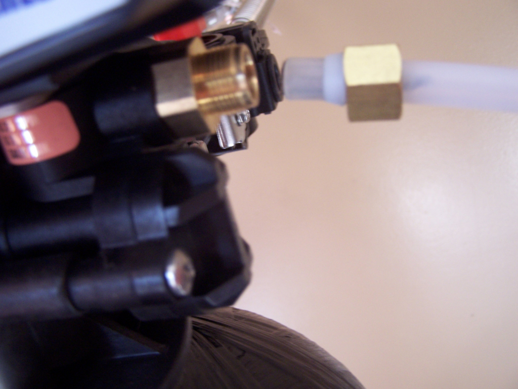 You will be attaching the other end of the tubing and nut to the smaller of the two threaded drains on the controller.