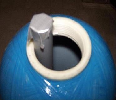 Place a peace of tape over the open end of the distributor tube to keep any resin from falling into the distributor while pouring it into the mineral tank (unless a plug is already in place).