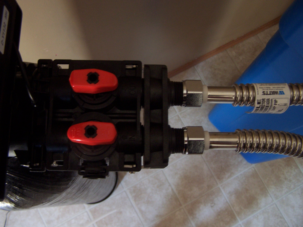 Here is one example (Left) of one way to hook up to the bypass using hot water heater installation hoses.